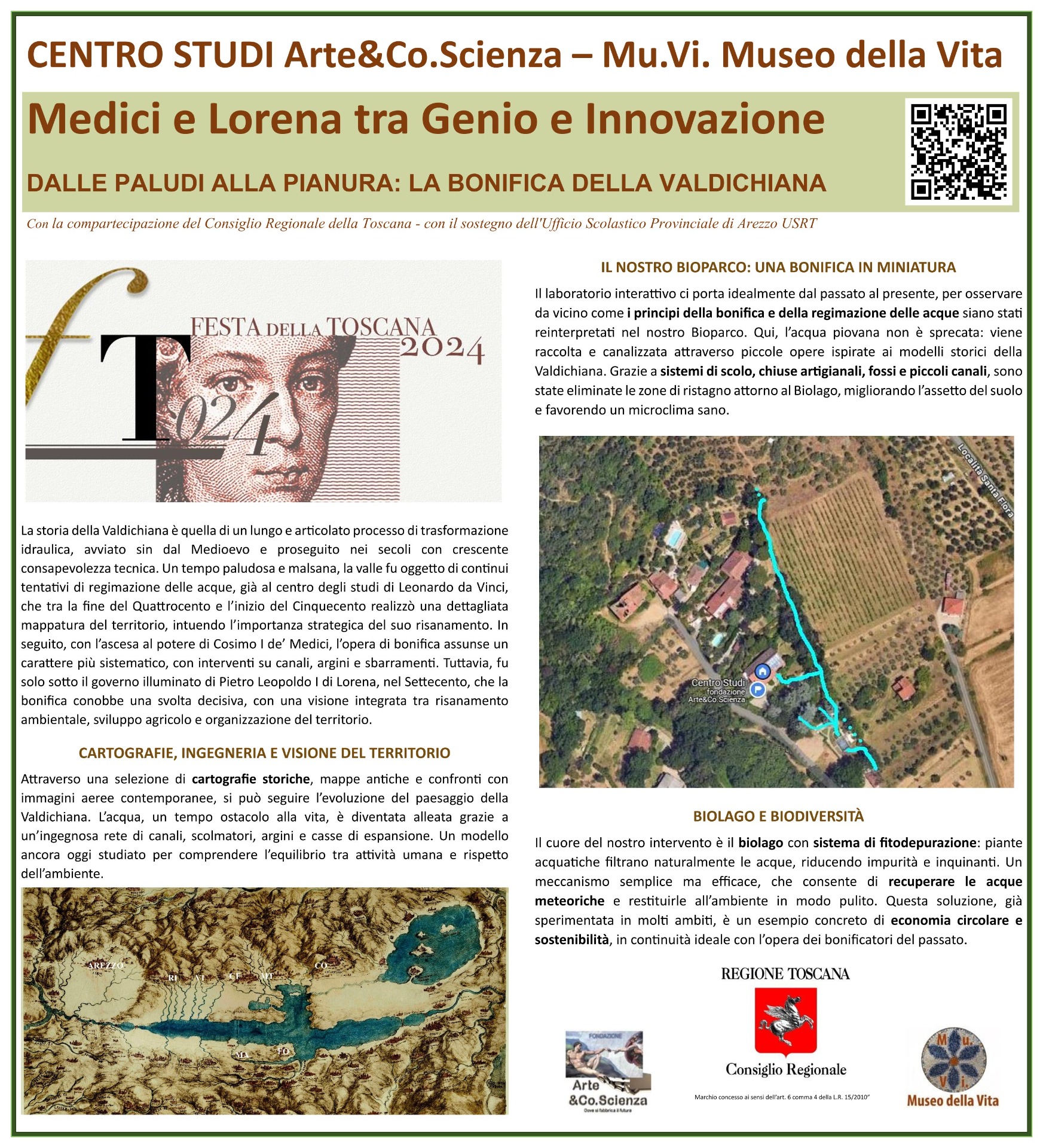 - Obiettivo: relazione con l'ambiente, conoscere il paesaggio della Valdichiana, la sua storia millenaria e le grandi opere di bonifica che ne hanno trasformato l'ambiente, valorizzando il rapporto tra uomo, natura e lavoro.